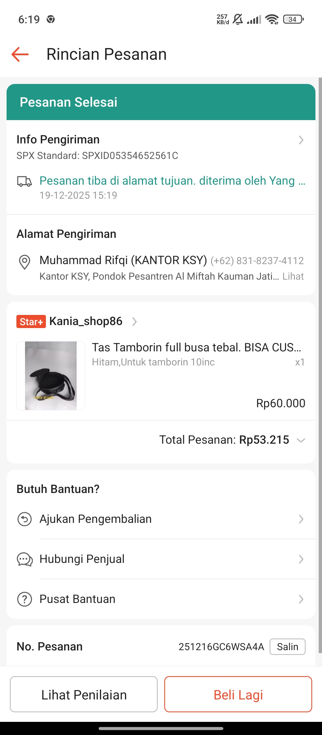 | tas tamborin | Rp 54.000 | 2025-12-19 | Lihat |